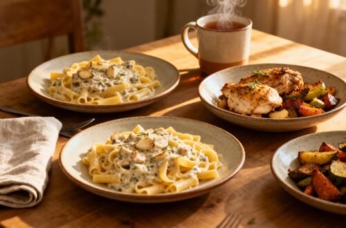 Holiday evenings often carry a quiet pressure: the expectation to produce something warm, grounding, and shared—even when time is thin. Simple one-pan meals make space for that without stretching energy beyond what the day allows. They rely on steady preparation, intentional layering, and the kind of straightforward cooking that supports gathering rather than complicating it. These dishes aren’t shortcuts; they’re structured choices that keep the focus on the table instead of the workload surrounding it. One-Pan Herb Chicken with Root Vegetables This meal works because it builds flavor from dependable fundamentals. A single pan handles everything—chicken thighs for moisture and endurance, root vegetables for deep warmth, and herbs that open…